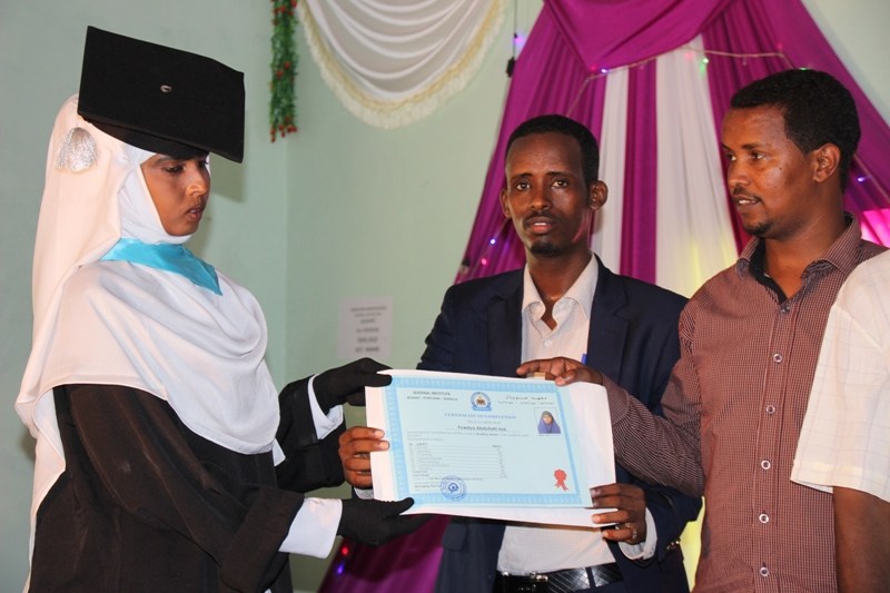 Gaba gabadii waxaa halkaasi shahaadooninkii ay mutaysteen lagu gudoonsiiyay ardaydiika qalin jabisay machadka waxaana gudoonsiiyay maamulka machadka iyo mas’uuliyiintii ka soo qayb gashay xaflada.