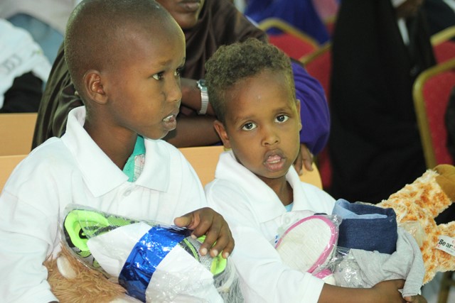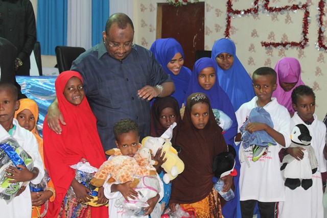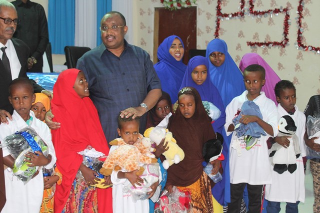 Ugu dambayntiina madaxweynaha ayaa baalmarino gudoonsiiyey carruur tartamaysey, wuxuuna sidoo kale agabkii ay ku ciidi lahaayeen u qaybiyey carruurtii xafladda ku sugnayd.