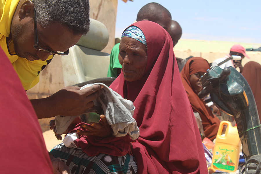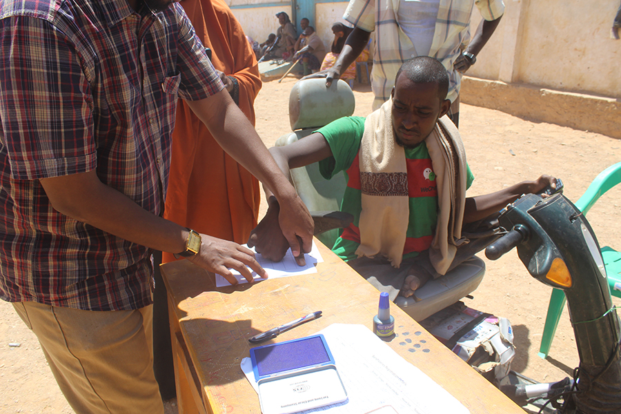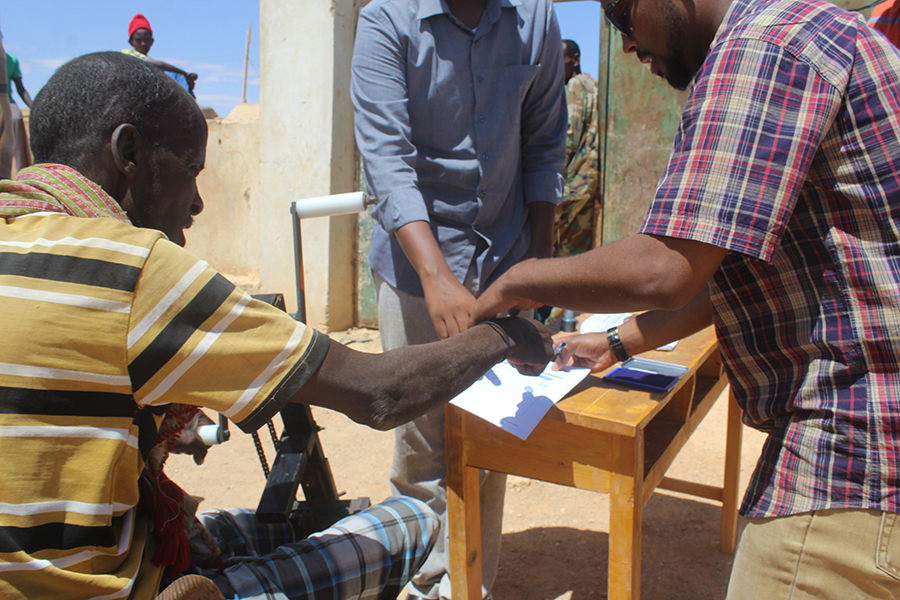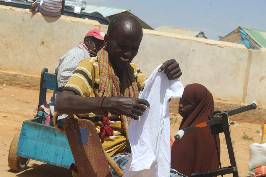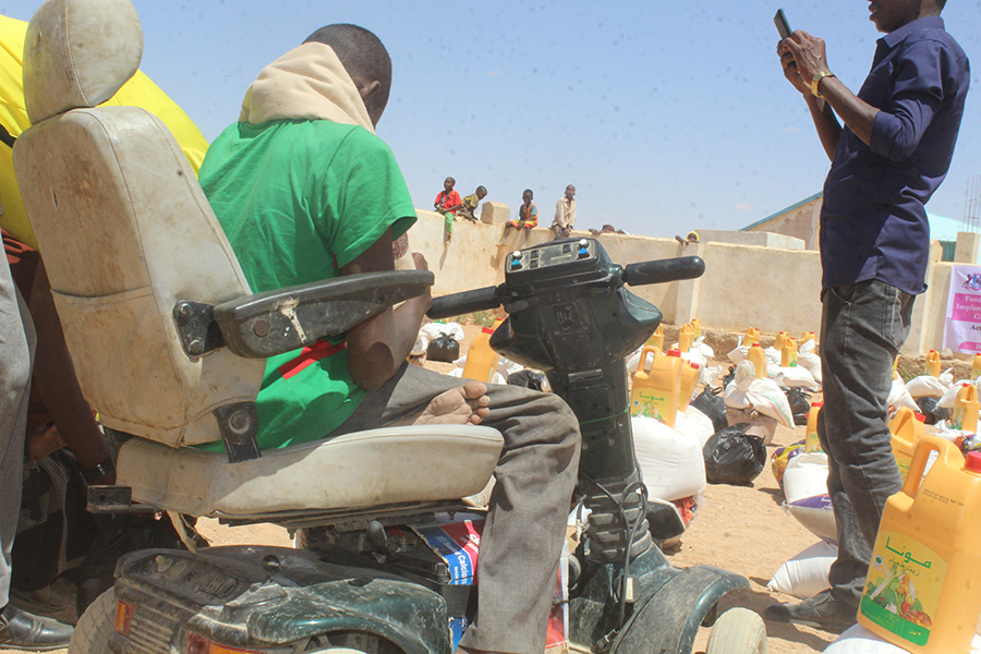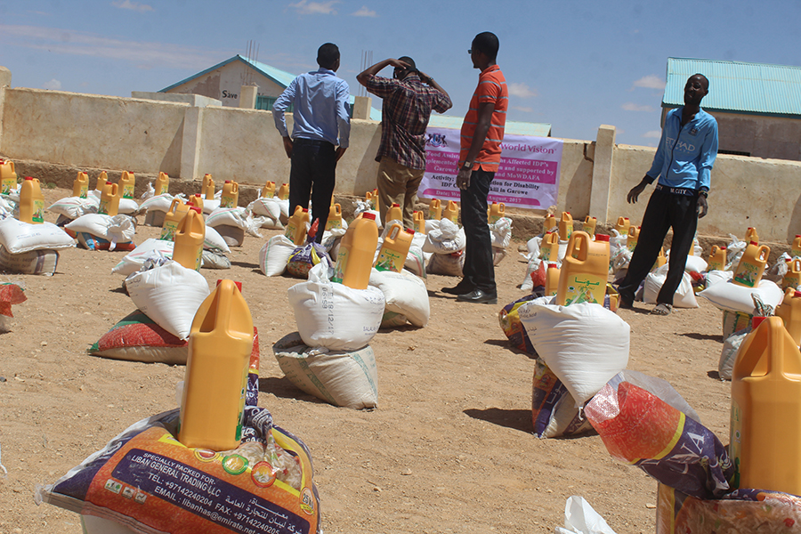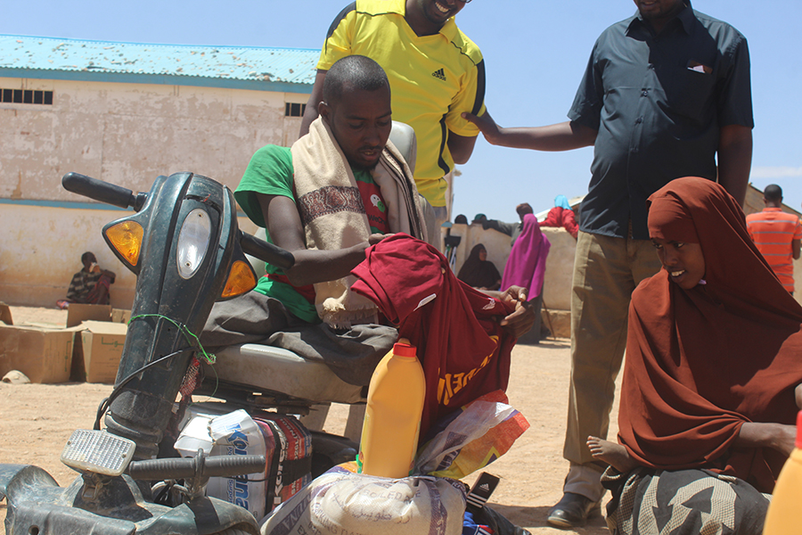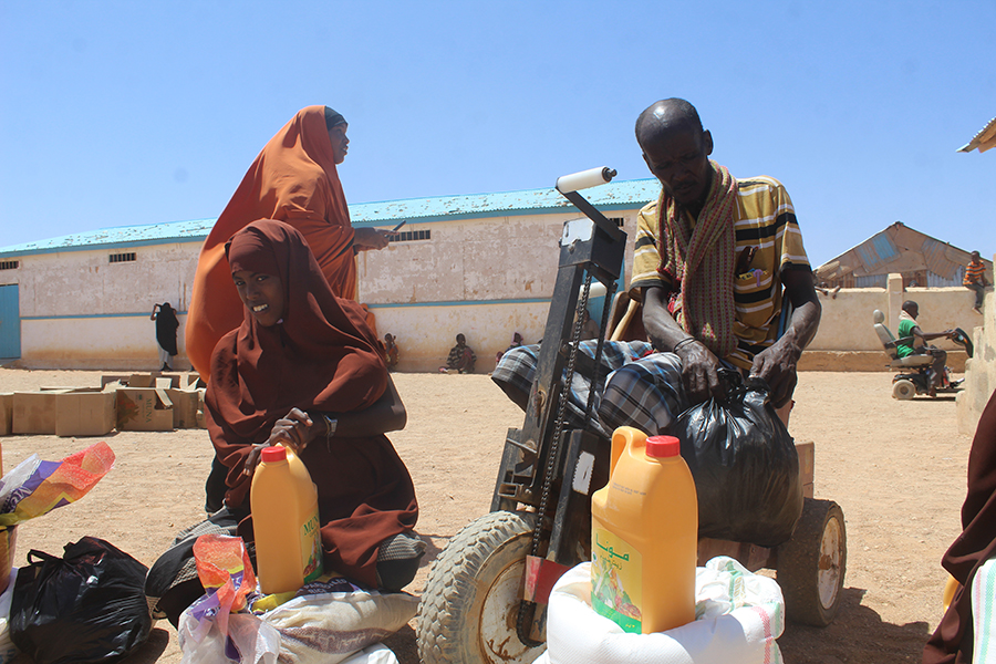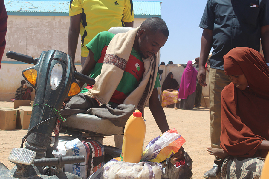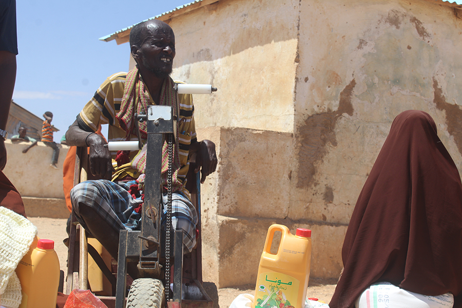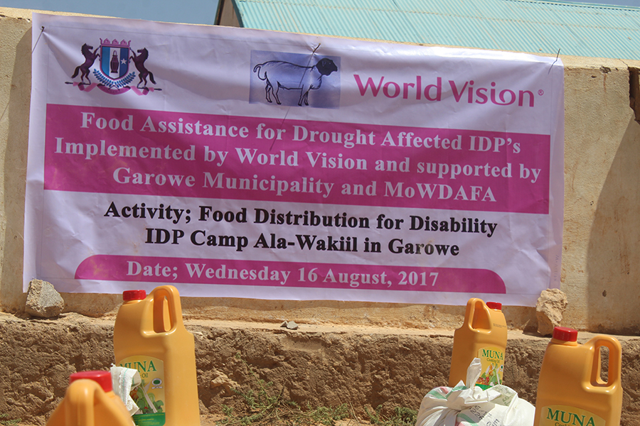 Cali Salaad Xasan oo ka tirsan Hay,adda World Vision ayaa sheegay inuu barnaamijkaan qeyb ka yahay taageerida dadka ay saamaysay abaartu, wuxuuna sheegay in horey loo siiyay agabka loogu talagay inay  dadka naafadda ee ku nool kaama Allaa Wakiil ku socdaan sida gadiidka curyaanada ah.