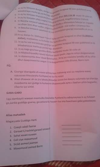 Akhriso Qodobada shirka ka soo baxay
