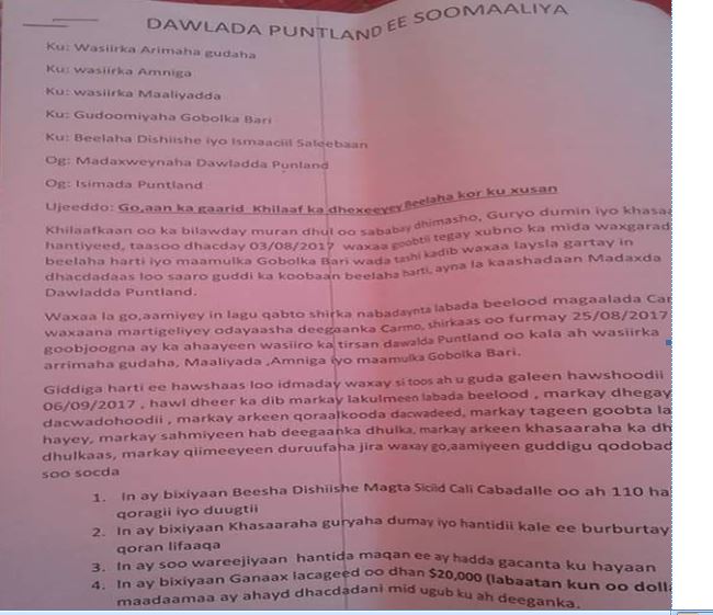 Shirkan ayaa Degmada Carmo Ee gobalka Bari ka Furmaya 25-8 2017 waxana uu soo maray heerar kala duwan waxana gabagabad kulankan goob joog ka ahaa xubno ka tirasan golaha Wasiirada Puntland, Maamulka gobalka Bari iyo odayaal dhaqan.