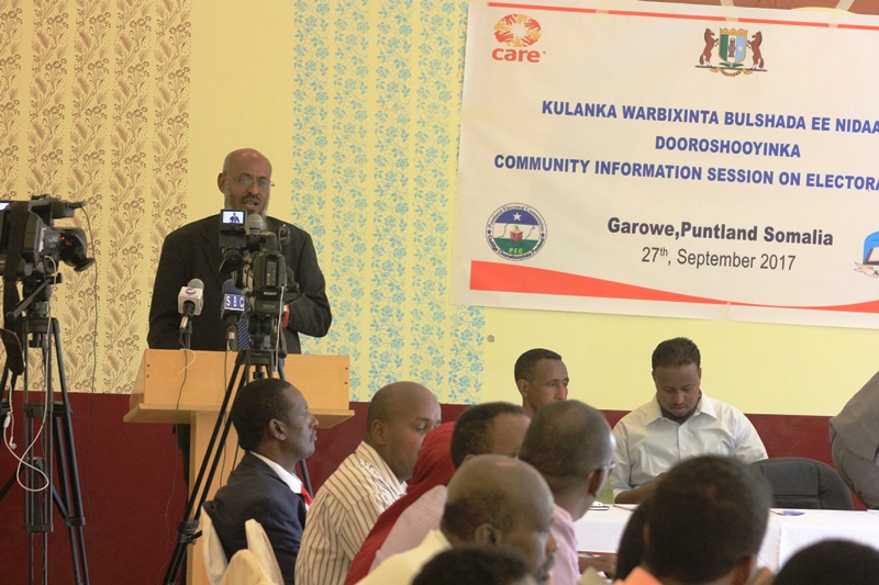 Guddoomiyaha Guddiga KMG ah ee Doorashooyinka Puntland Cabdiraxmaan Diiriye Samatar ayaa furitaankii kulankan ka sheegay in Guddigu uu diyaar u yahay inuu bulshada ugu shaqeeyo daacad islamarkaana uu ka dhabeeyo sidii loo gaari lahaa Dimuqraadiyadda.