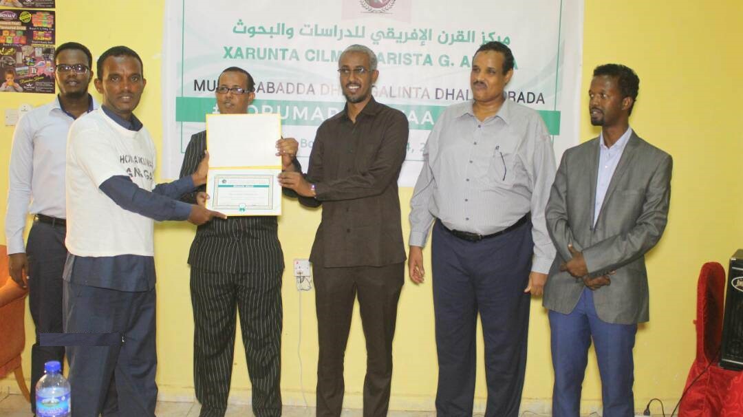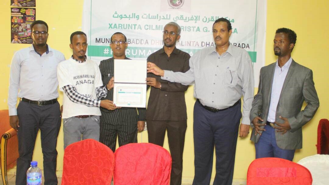 Xarunta Cilmi-Baarista ee Geeska Africa ayaa maanta shahaado sharaf Bosaso ku guddoonsiisay dhalinyaro la magac baxay “Horumarku Waa Annaga” oo shaqooyin Iskaa wax-u-qabso ah maalmihii lasoo dhaafay ka qabtay waddooyinka magaalada Bosaaso.