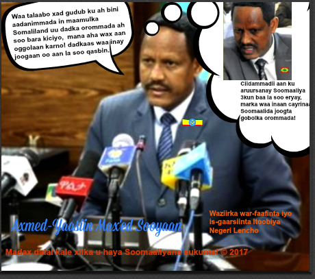 Negeri Lencho, markuu ka hadlayay dadka Itoobiyaanka ah ee ka cararay Somaliland wuxuu u hadlayay sidii in dadkaas laga soo eryay dalkoodii, ama ay ahaayeen dad qaxooti ah oo meesha lagu ogaa oo dalkoodii ka soo cararay, ama heshiis dowlad Soomaaliyeed iyo Qarmmada Midoobay ku joogay Somaliland, ujeeddada hadalkiisa macno weyn ma samaynayn wuxuuna u ekaa nin is muujinaya oo walaac siyaasadeed ka qaba gudaha dowladda Itoobiya, wuxuuna isku dayay inuu xiisadda Soomaalida lagu laynayo kor u sii qaado si uu u daboolo walaaciisa, isag wuxuu doonaba ha qabee dowladda Soomaaliyeed hadalkaas abbaarteedii kama oran, waxay sidaas oo kale ka aamustay oo waliba si fool-xun oo laga xishoodo u inkrtay wixii lagu sameeyay shacabkii Soomaaliyeed ee ku noolaa Itoobiya, ahlko uu Lencho afka aburta ka sii dayniyay isagoo aan wax sharci ah cuskanayn.
