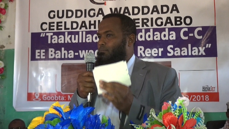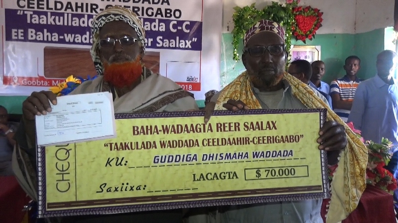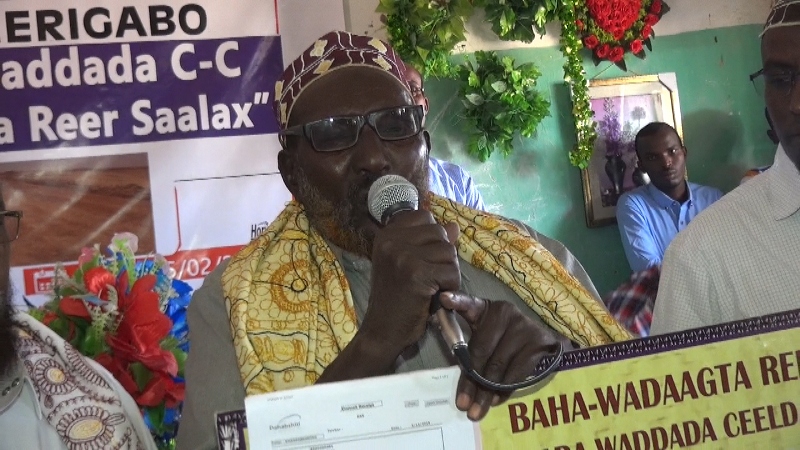 Aniga oo ku hadlaya afka bulshada Bah-wadaagta Reer saalax waxan halkan ku wareejinaynaa taakulo lacageed oo dhan [$70,000] oo doolar oo anu ugu talagalnay in aanu ku dhiirigalino guduga gacanta ku haysa dhismaha wadada Ceeldaahir iyo Ceergaabo si loo dhameystiro. sidaas waxa munasabada wareejinta lacagta ka sheegay Nabadoonka guud ee Bah-wadaagta Reer Saalax.