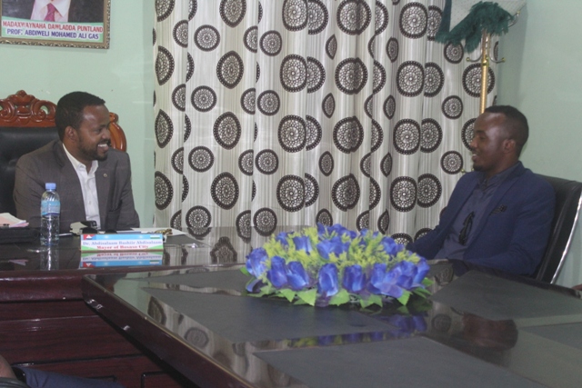 Musharaxa duqa degmada Boosaaso Maxamed Faarax Xaaji Mire ayaa maanta 13 March, 2018 waxa uu booqday xarunta Dawladda Hoose ee degmada Boosaaso waxaana halkaa si diiran ugu soo dhoweeyay duqa KMG ah ee degmada Boosaaso ahna Wasiir ku xigeenka Maaliyadda Puntland Cabdisalaan Bashiir Cabdisalaan.