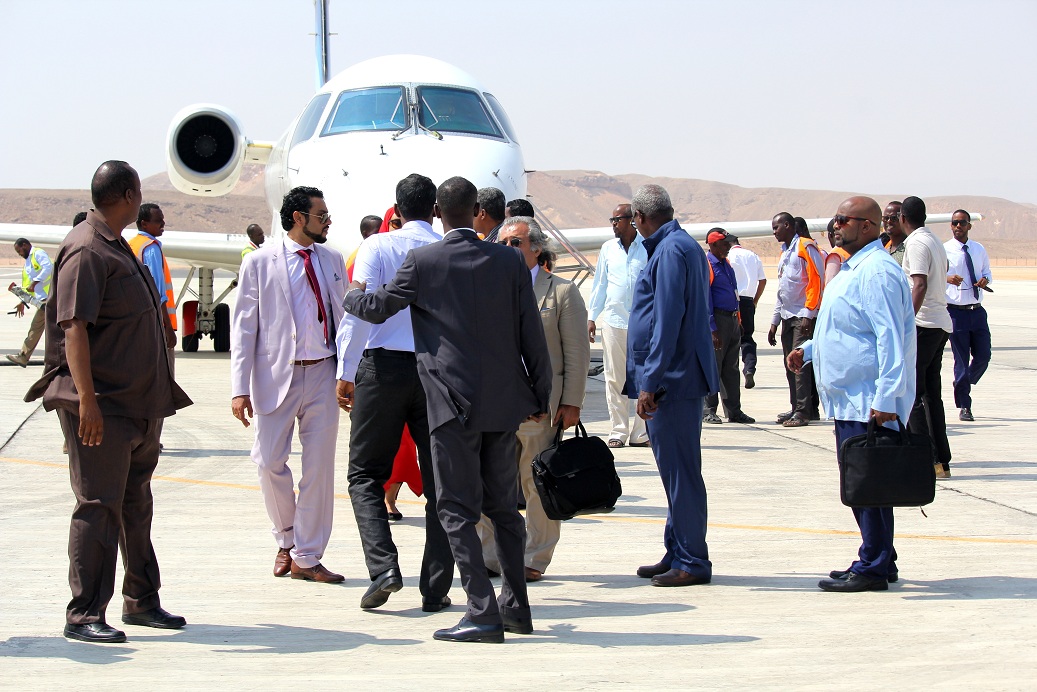 Siyaasi Cali Cabdi Awaare oo hogaminayey Waftiga Diyaarada la socdaya ee ka yimid dalka Jabuuti ayaa bogaadiyey imshaha Air Djibouti Puntland waxana uu shacabka ugu baaqay in ay ka faa,idaysatan Duulimadyada ay diyaardu sameynayso.