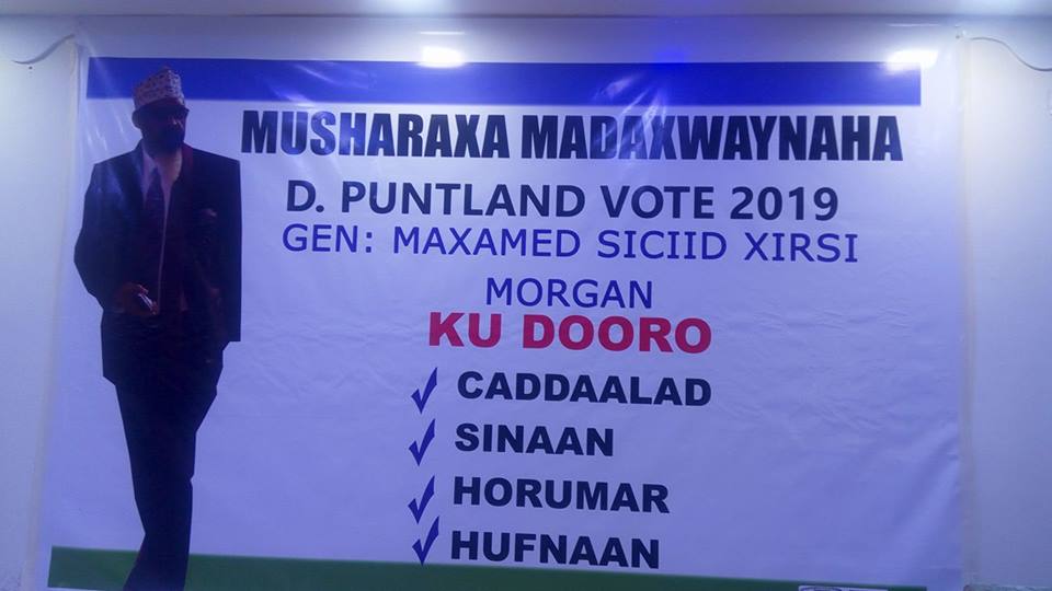 Bosaso-[Puntland Post]-Jeneraal Maxamed Siciid Xirsi (Morgan) oo soo noqday Wasiirka Difaaca ee Jamhuuriyadii Kacaanka Soomaaliya, ahna Jeneraal Milateri ayaa kaga dhawaaqay magaalada Boosaaso ee xarunta Ganacsiga Puntland, in uu yahay musharax u taagan xiilka Madaxweynaha Puntland doorashada nagu soo aadan ee dhici doonta bilowga sannadka 2019-ka.