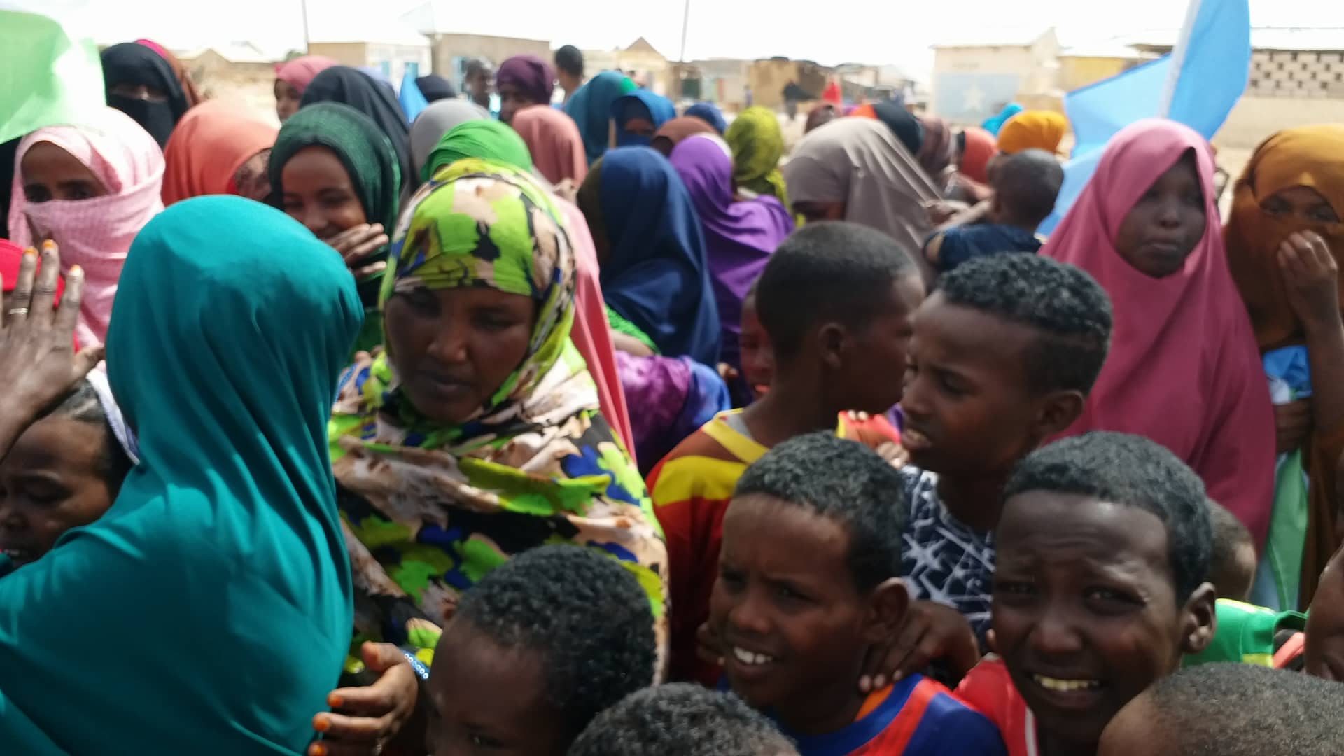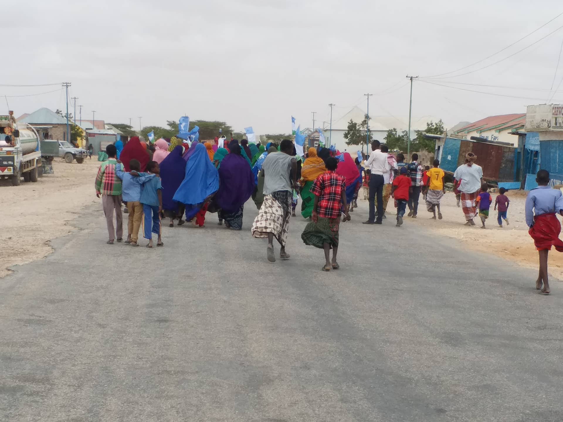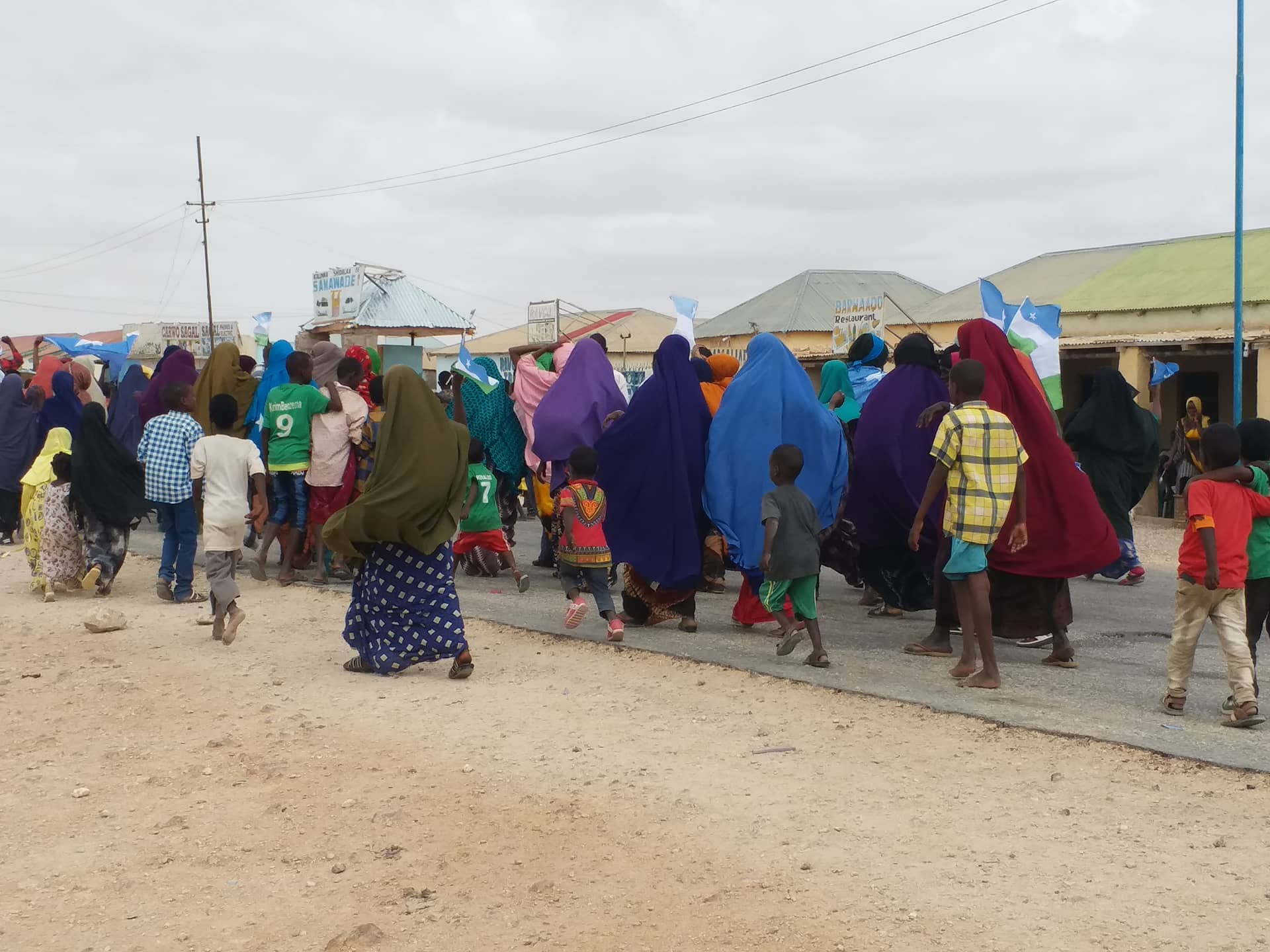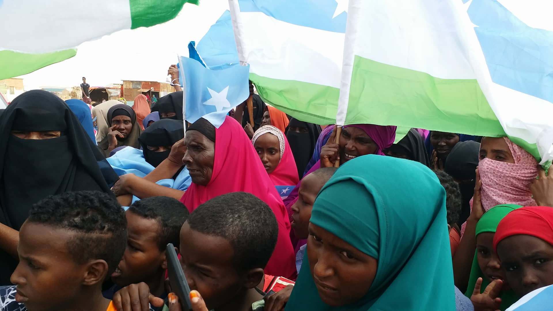 Shacabka banaanbaxa samaynayay ayaa sitey calanka Soomaaliya iyo kan maamul Goboleedka Puntland, waxayna ku qeylinayeen ereyo ay ka mi ahaayeen “ Ciidanka Puntland guulaysta” Jabiya Soomaali diidka iyo Ereyo kale.