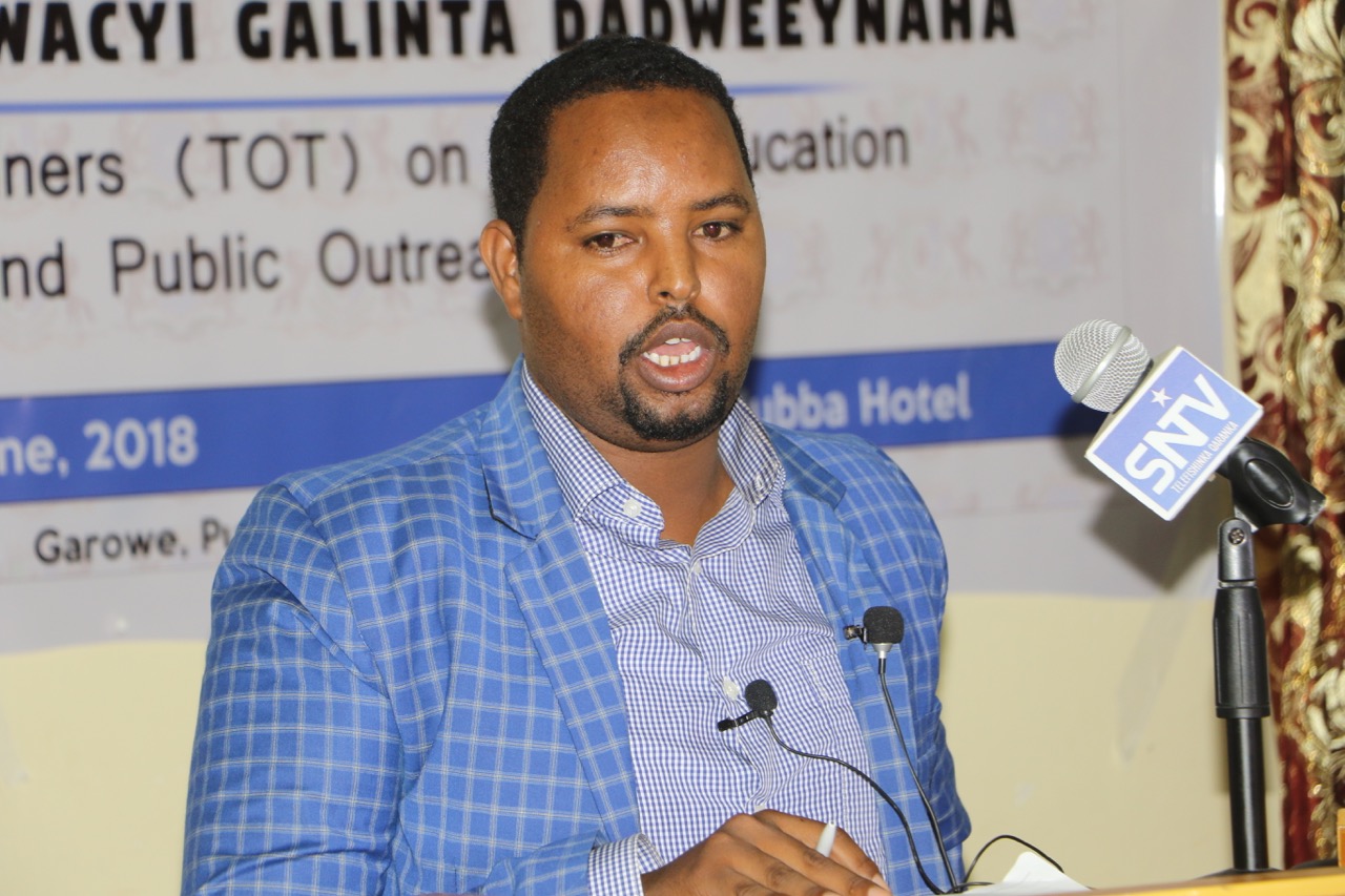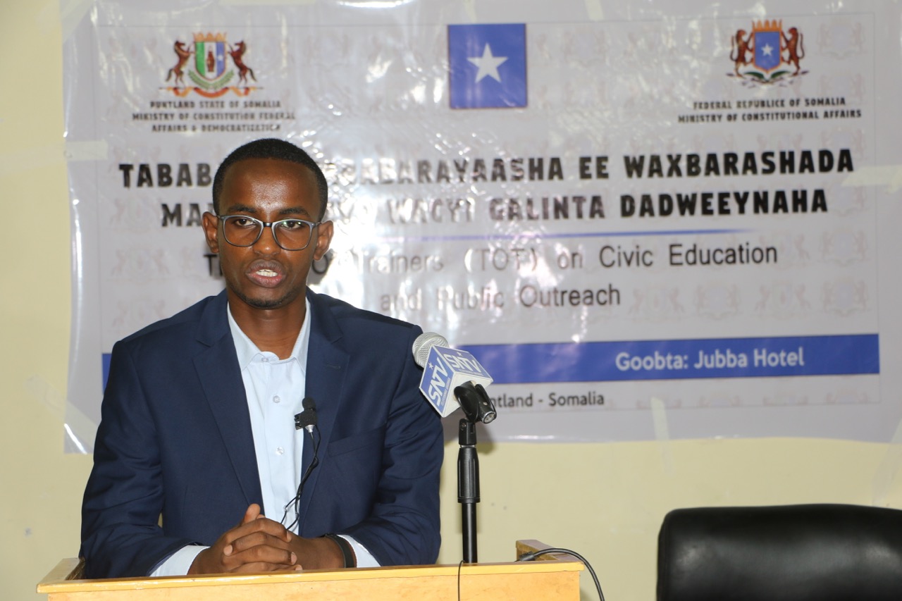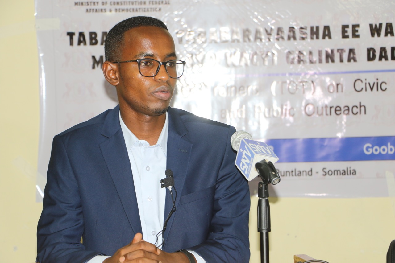 Ku-simaha Agaasimaha Wasaarada arrimaha dastuurka Yuusuf Ibraahim Saalax oo sharaxaad ka bixiyay ujeedada tababarka loo qabtay, wuxuu sheegay in tababarkan  tababarayaasha looga dan leeyahay  sidii bulshada Puntland lagu gaarsiin lahaa wacyigelinta waxbarashadda Madaniga,iyadoo loo tababaray dad aqoon durugsan u leh shuruucda iyo dastuurada Puntland & kan Soomaaliya.