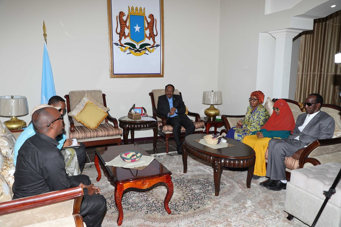 Madaxweynaha Jamhuuriyadda Federaalka Soomaaliya Mudane Maxamed Cabdullaahi Farmaajo ayaa maanta xafiiskiisa ku qaabilay xubno kamid ah dalladaha ururrada naafada kuwaas oo kaalin mug leh ka geystay u ololeynta xuquuqda dadka naafada ah.