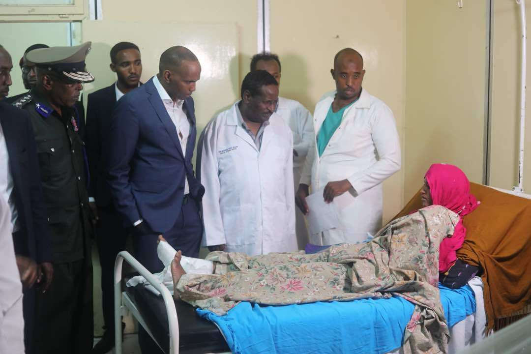 Ra’iisul Wasaaraha Xukuummadda Federaalka Soomaaliya Mudane Xasan Cali Khayre oo uu wehliyo taliyaha ciidanka Booliiska ayaa xalay booqday cisbitaallada lagu daweynayo dadkii ku dhaawacmay weerarkii aragagaxisadu ay la beegsadeen xarunta Wasaaradaha Arrimaha Gudaha iyo Amniga.