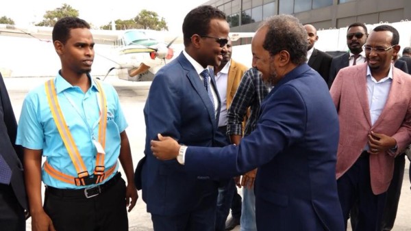 Xasan Shiikh Maxamuud Madaxweynihii hore Soomaaliya ahna Xildhibaan ka tirsan Baarlamaanka ayaa lagu soo dhaweeyay garoonka diyaaradaha Aadan Cadde ee magaalada Muqdisho.