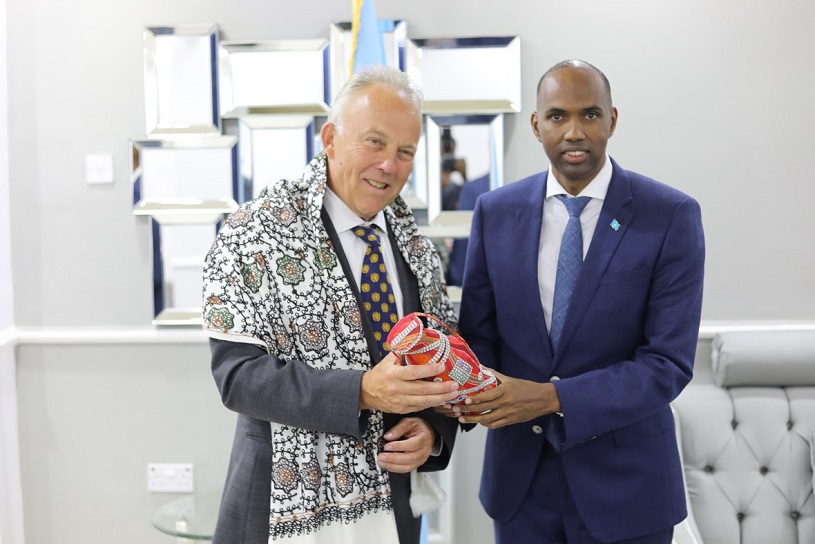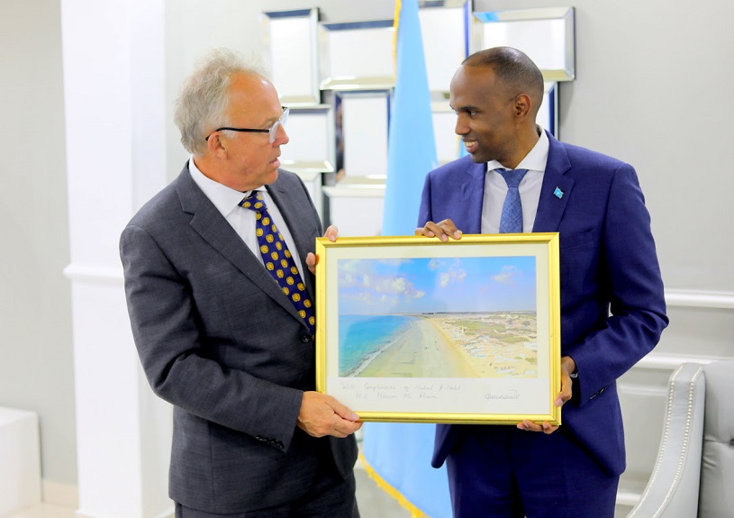 Ra’iisul wasaare Xasan Cali khayre ayaa Michel Keating uga mahadceliyay shaqadii wanaagsanayd ee dawladda Soomaaliya uu la qabtay intii dalka ka shaqaynayay, waxa uuna guddoonsiiyay haddiyado ka tarjumaya dhaqanka Soomaaliyeed.