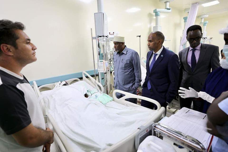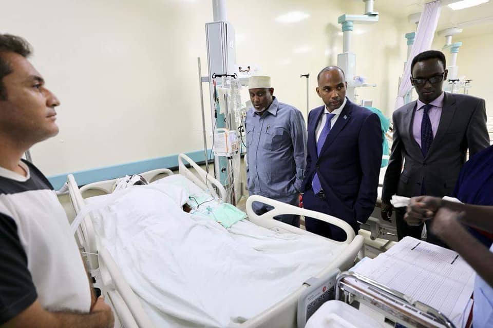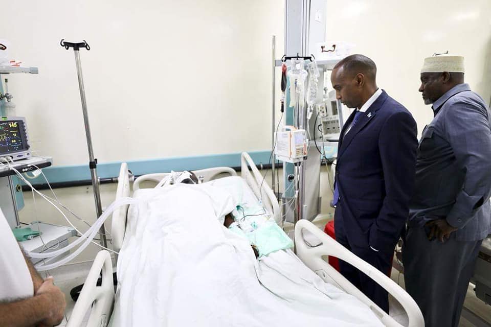 Ra’isilwasaaraha Xukuumada Soomaaliya Mudane Xasan Cali Kheyre oo ay wehliyaan Gudoomiyaha Baarlamaanka Soomaaliya Amb Mursal Sheekh Cabdiraxmaan iyo ku xigeenka Gudoomiyaha Baarlamaanka Muudeey ayaa Booqday Dhaawaca Xildhibaan Maxamed Mursal Maxamuud Booroow oo xalay ku dhaawacmay qarax gaarigiisa loogu xiray.