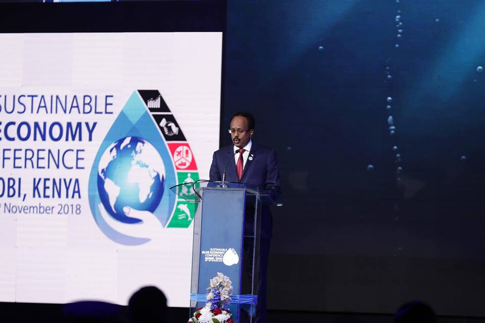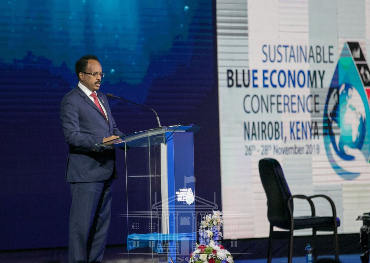 Madaxweynaha Jamhuuriyadda Federaalka Soomaaliya Mudane Maxamed Cabdullaahi Farmaajo oo khudbad ka jeediyey shirka caalamiga ee dhaqaalaha badaha oo ka socda magaalada Nairobi ayaa sheegay in ay muhiim tahay in meel looga soo wada jeesto falalka sharci darrada ah ee badaha.