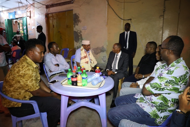 Ra’iisul wasaaraha xukumadda Federaalka Soomaaliya Mudane Xasan Cali kheyre oo kormeerkiisa ku guda jira ayaa  kulamo is xogwareysi iyo kala warqaadasho ah waxa uu  la qaatay dadkii ku caweynayey  waddooyinka maagaladda , kuwaasi oo isugujira dhalinyaro,ganacsato iyo dadka degan.