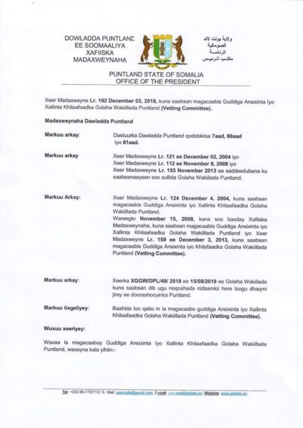 Madaxweynaha Puntland Cabdiwali Maxmed Cali Gaas ayaa maanta magacaabay Guddiga xalinta khilaafaadka iyo ansixinta Golaha Wakiilada.