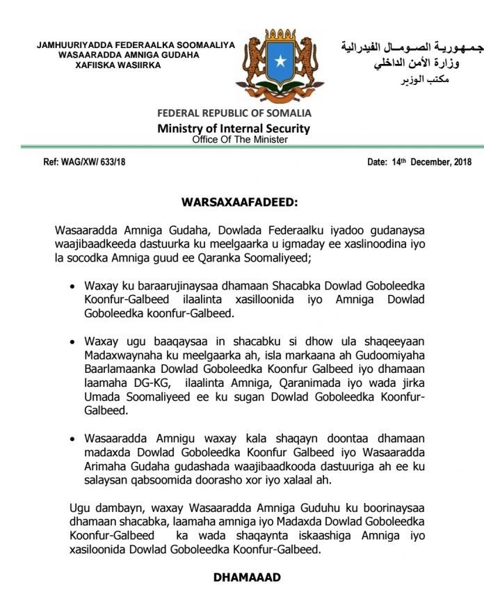 AKHRISO: War-saxaafadeedka ay soo saartay Wasaaradda Amniga DF;
