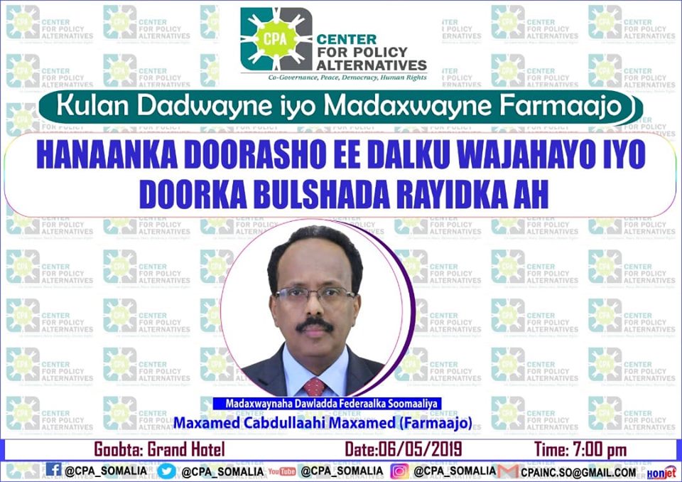 Kulankan oo sida boorkiisa ku xusan  ay soo qaban-qaabisay, xarunta cilmi-baarista ee Center For Policy Alternatives oo fadhigeedu yahay Garoowe, ayaa sida la sheegay ku saabsanaa, hannaanka  doorashooyinka dalku wajahayo iyo doorka bulshada rayidka ah.