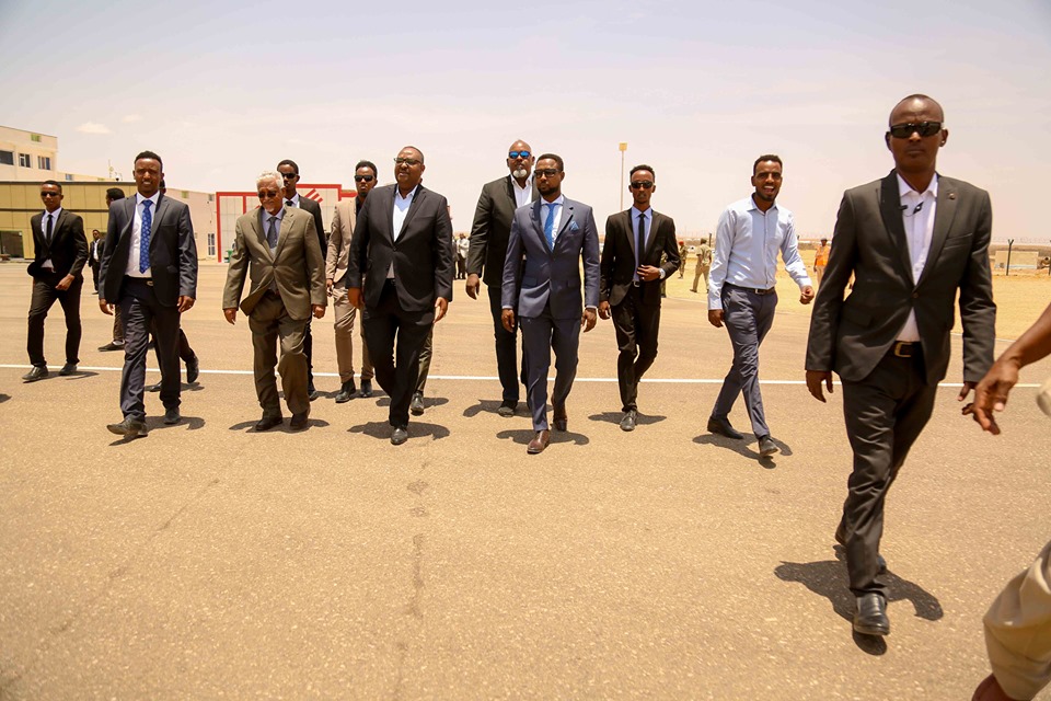 Garoonka diyaaradaha Gen. Maxamed Ashir ee magaalada Garoowe waxaa kusii sagootiyey Madaxweynaha iyo weftigiisa Madaxweyne Ku-xigeenka dowladda Puntland Mudane Axmed Cilmi Cismaan Karaash, masuuliyiin ka tirsan Goleyaasha dowladda, Saraakiil Ciidan, Saraakiil ka tirsan Madaxtooyada Puntland iyo masuuliyiin kale.
