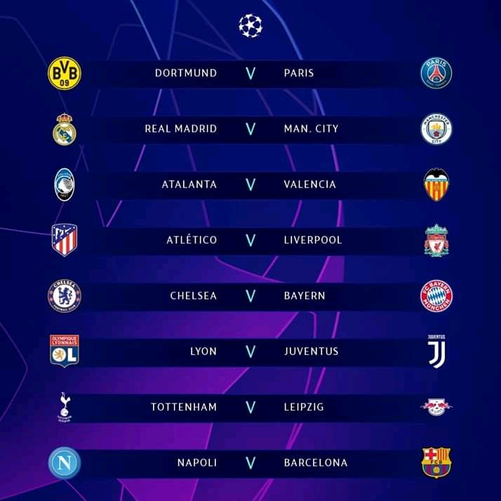 Sidoo kale kooxaha Borussia Dortmund iyo Paris Saint-Germain ayaa isku aaday, halka Tottenham oo sanadkii hore lagaga guuleystay tartankan ay ku dhacday kooxda reer Germany RB Leipzig oo ah koox sakhiran.