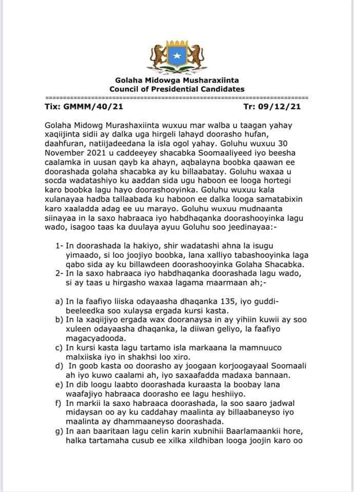 Golaha Midowga Musharaxiinta ayaa warkan ku sheegay war-saxaafadeedka hoose oo ay goordhaweyd soo saareen.