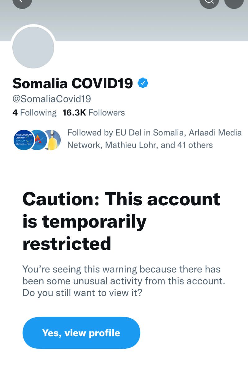 The Twitter handle refuted by the Health Ministry is a verified but restricted account followed by, among other followers, EU Delegation in Somalia.