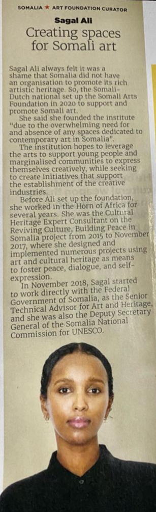 Sagal Ali, the founder of the Mogadishu-based Somali Arts Foundation, was selected by the New African magazine as one of 100 most influential Africans of 2022.