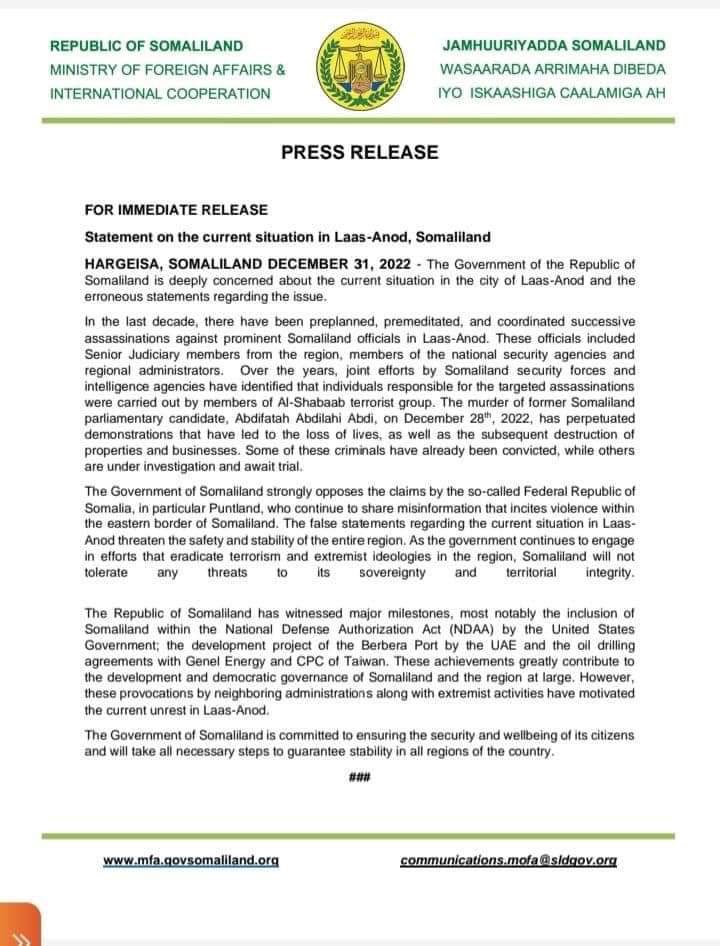 The International Community can play a role in persuading Somaliland administration to withdraw its troops in Las Anod and confine its administration only to areas where the 2001 unilateral referendum for “Somaliland” took place. Withdrawal of troops in Las Anod will not diminish the stature of Somaliland Administration during talks with the Federal Government of Somalia about the Union.