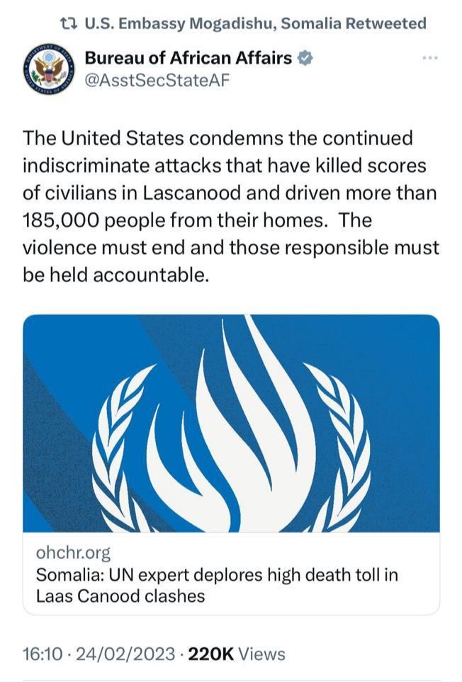 Xafiiska Xuquuqda Aadanaha ee Qaramada Midoobaay ayaa ku tilmaamay duqeynta ciidammada Somaliland u geysteen Laascaanood mid jebinaysa Sharciga Caalamiga.