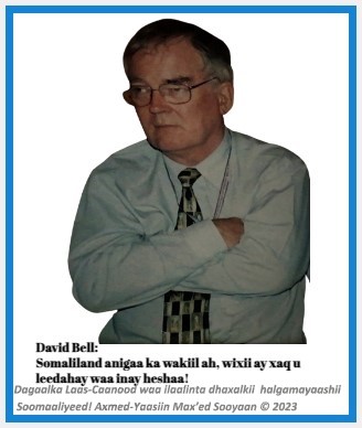 David Bell, waxaa shaki la’aan ah inuu si buuxdo shirkaas Mbagathi uu wakiil uga ahaa waxa loogu yeero Somaliland. Mararka aan badneyn ee uu shirkaas soo hadal qaado waxyaabaha la xiriira dhibaatooyinka xagga nolosha ah ee Soomaaliya heysata iyadoo waliba erggadii Soomaalida ahayd ee ay maamuleysay gacantii dulmineysay ee kala qeybineysay oo ay xisaabtooduna ahayd in Somaliland ay tahay dal gaar ah ayaa haddana David Bell dheeri ka ahaa ergooyinka kale ee shisheeyaha shirkaas u jooga, oo xataa Kenya iyo Itoobiya oo iyagu ahaa labo dal oo dan bidaayay go’itaanka Somaliland sababo la xiriira inay xoog ku heystaan dhul iyo dad Soomaaliyeed, oo shaki ay ka qabeen Soomaalidii shirka fadhisay ayuu baro dheeraa oo wuxuu si aan qarsoodi lahayn oo waliba kibir ku jiro u muujinayay in Somaliland waxeeda loo gaar yeelo, mararna wuxuu ku kaftami jiray in waxa ay Somaliland leedahay isagu wakiil uga yahay!…
