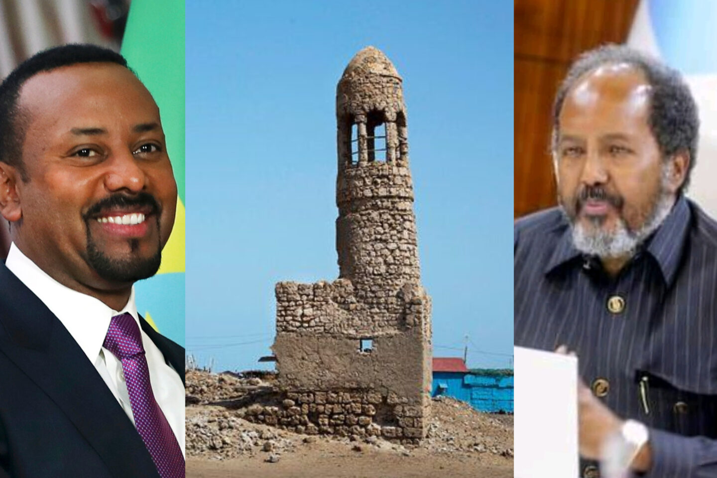 Abiy Ahmed (left) has his eyes on Zeila (middle) while President Hassan Sheikh Mohamud (right) remains silent on the matter.
