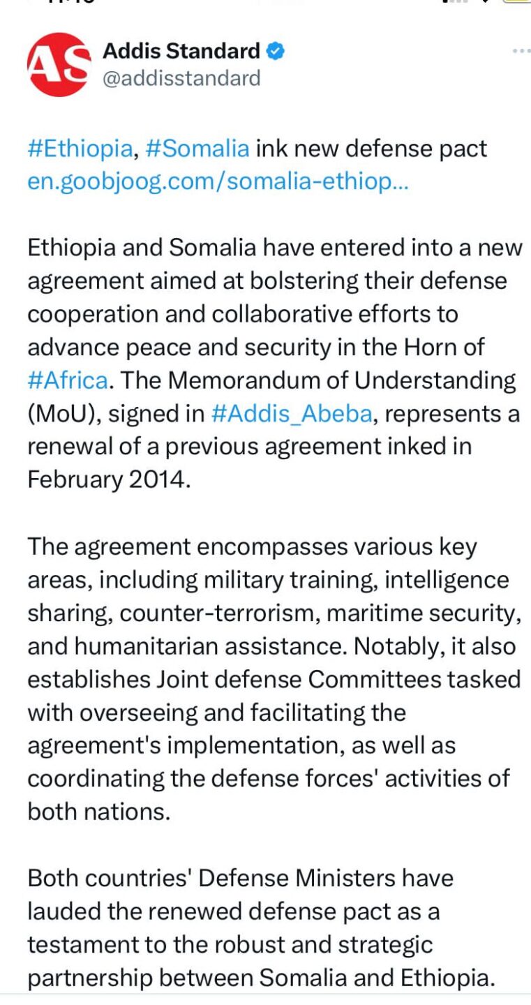 Yesterday, Ethiopia defended its decision to sign a MoU with Somaliland administration, and echoed the arguments in the statement published yesterday by the secessionist administration. Somaliland administration argued that the MoU reflected the letter and spirit of previous agreements signed with the Federal Government of Somalia in the sphere of economic development. No agreement contained a clause that gave the Somaliland administration the privilege to grant a naval base to a foreign country.