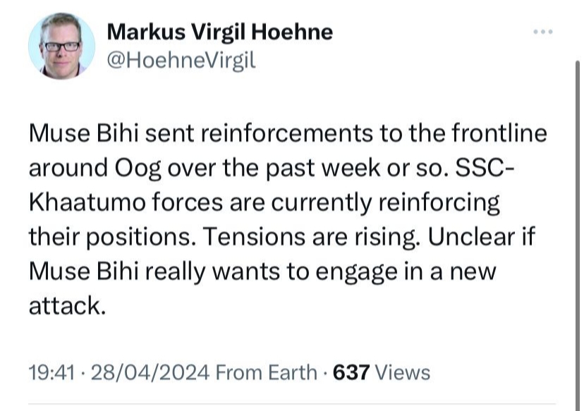 Mogadishu (PP News Desk) — Reports from Hargeisa suggest that Muse Bihi, the President of Somaliland administration, has deployed additional troops to Oog in anticipation of potential clashes with SSCK forces. An analyst in Hargeisa outlined two key aspects of Bihi’s conflict strategy. “Bihi exploits conflicts to delay elections, as evidenced by his discussions with Speaker Yasin Faratoon, who declared unresolved conflicts as a barrier to elections,” stated the analyst. Bihi faces slim reelection prospects but his campaign is pushing a narrative blaming Waddani, the main opposition party, and its supporters for the defeat of Somaliland forces at Gooja’adde foxholes in August 2023.