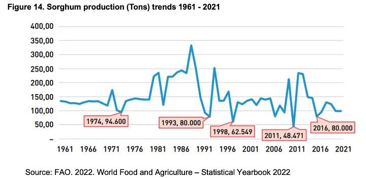 However, in the past few decades, the country, caught in multiple crisis, has witnessed a rapid decline in the production of these three major crops due to worsening climate conditions, particularly drought and desertification.