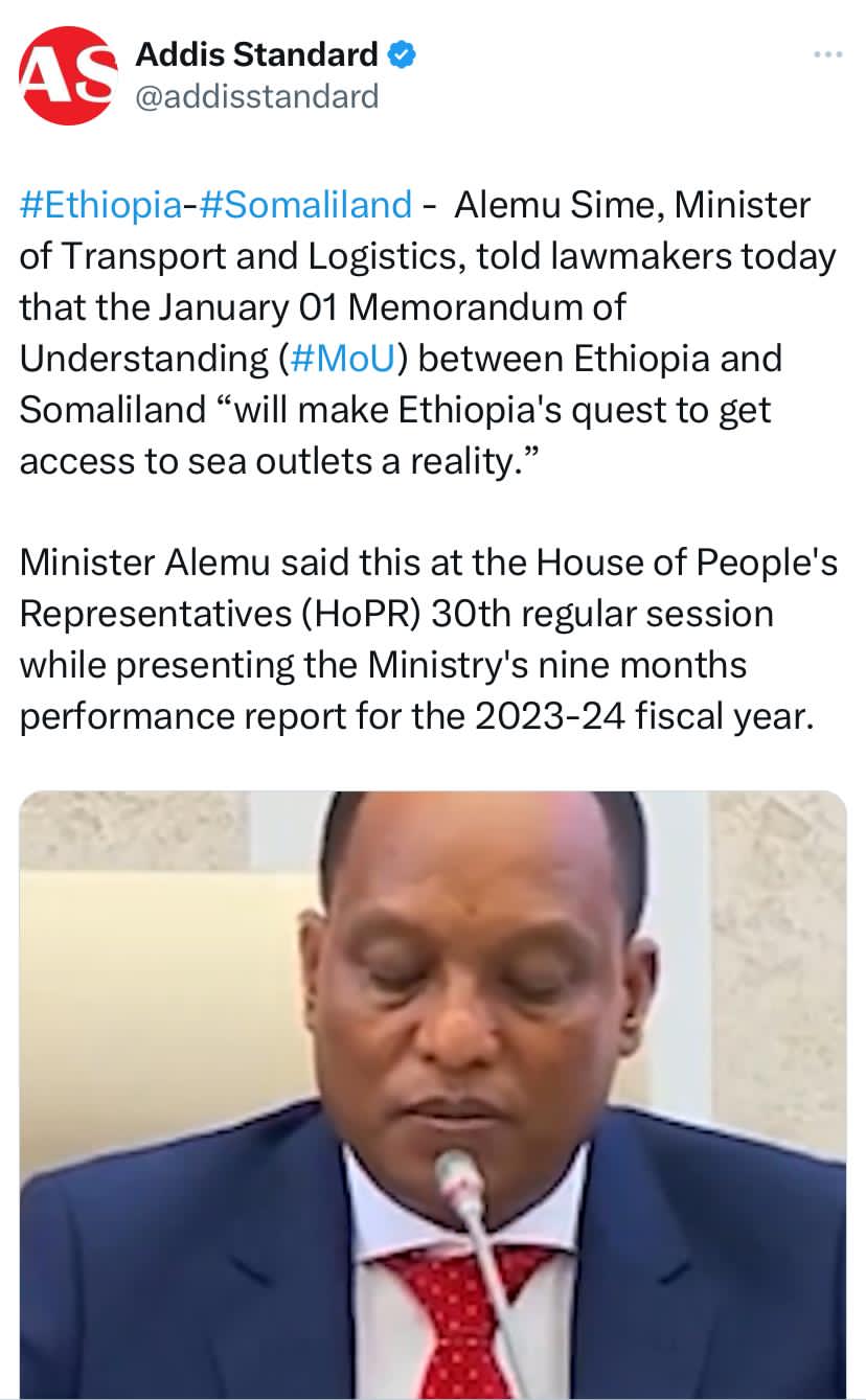 Mogadishu (PP Comment) — The statement by Alemu Sime, Ethiopia’s Minister of Transport and Logistics, that the maritime Memorandum of Understanding between Ethiopia and the secessionist administration of Somaliland “will make Ethiopia’s quest to get access to sea outlets a reality,” is a provocation, an intentional disrespect to international norms and an attempt to violate the sovereignty of the Federal Republic of Somalia.