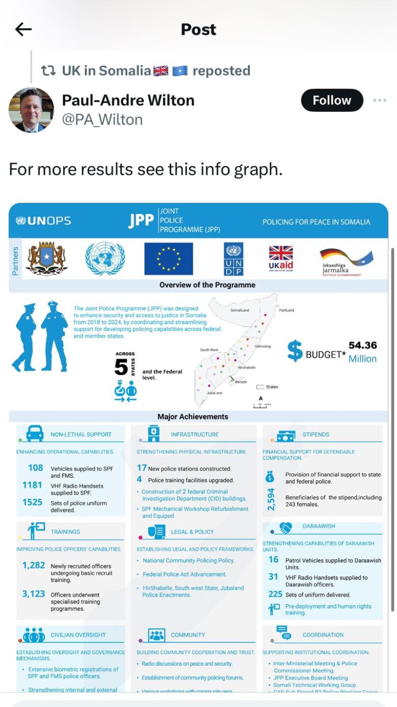 Mogadishu (PP Editorial) — The political map used by Paul-André Wilton, the Stability, Security, and Justice Team Leader at FCDO Somalia, in his tweet not only violates the sovereignty of Somalia, as it reflects the pre-Union maps of ex-British Somaliland and the ex-Italian Somaliland, but also unwittingly lends credence to the claim by the secessionist administration in Hargeisa that it controls what was known as the British Somaliland Protectorate.