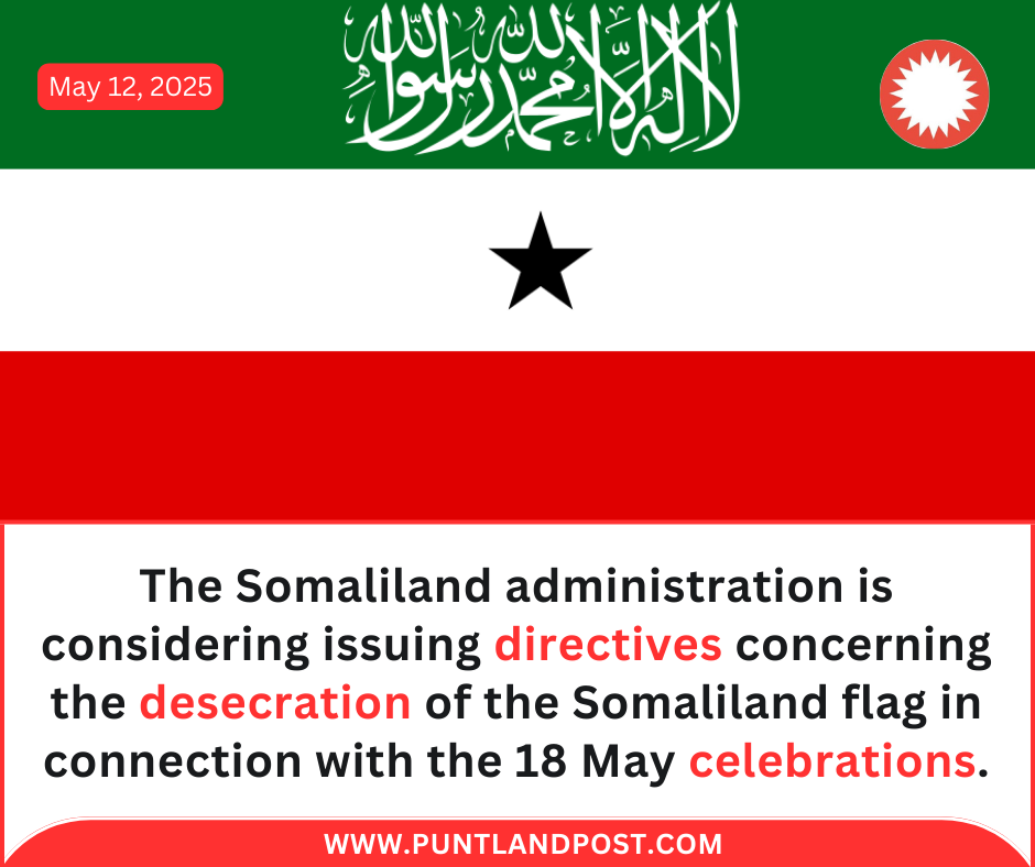 “The Somaliland administration is considering issuing edicts on the desecration of the Somaliland flag before or after the 18 May celebrations,” said a journalist in Hargeisa.