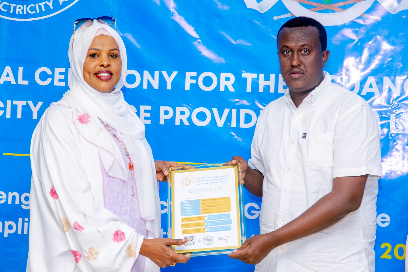 The National Energy Authority (NEA), under the leadership of the Ministry of Energy and Water Resources, is officially issuing licenses to Electricity Service Providers (ESPs)” stated NEA’s Director General. “This achievement reflects our collective dedication to building a transparent, accountable, and well-regulated electricity sector that delivers reliable and affordable power to Somali citizens”