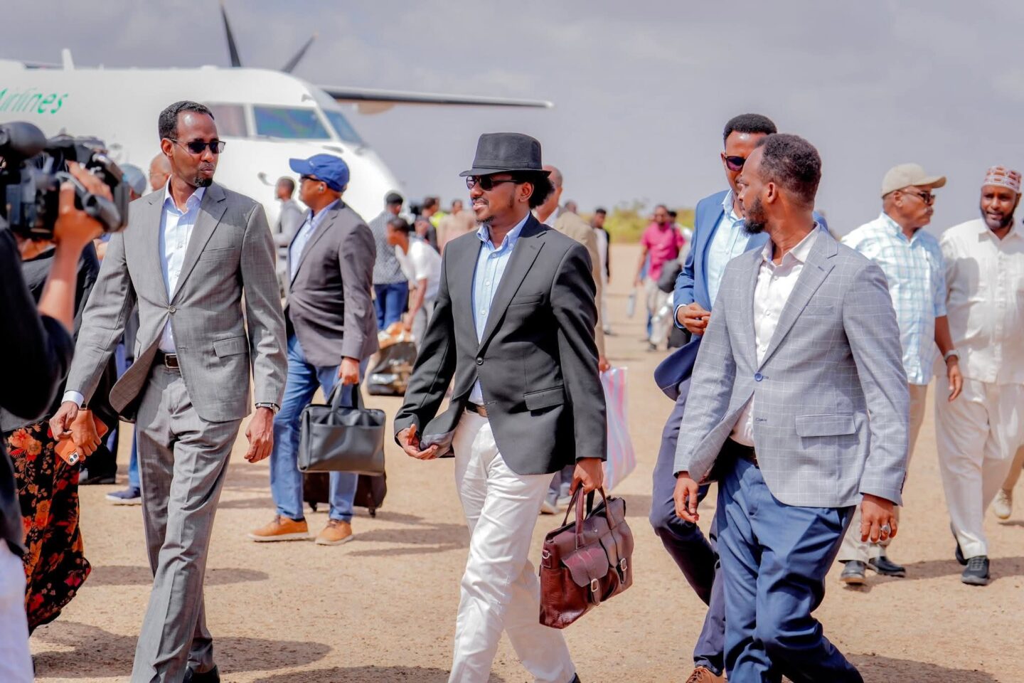 Wafdiga Kismaayo gaaray oo uu hoggaaminayo xoghayaha Madasha Samatabixinta Maxamed Aadan Koofi waxaa garoonka diyaaradaha ku soo dhaweeyay wasiirka arimaha gudaha Jubbaland Maxamed Ibraahim Oogle iyo mas’uuliyiin kale.