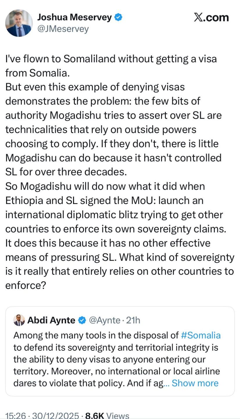 Hargeisa (PP News Desk) — Five days after Benjamin Netanyahu recognised the Somaliland Administration as a republic, Israelis have found it difficult to travel to northern Somalia. Most enter via the border between Ethiopia and Somalia. Applications for Somali e-visas have reportedly increased, with the majority of applicants holding American passports in order to travel to Hargeisa.