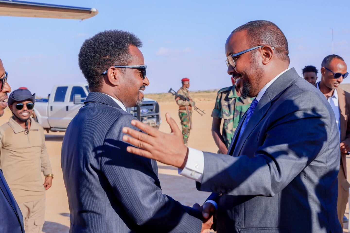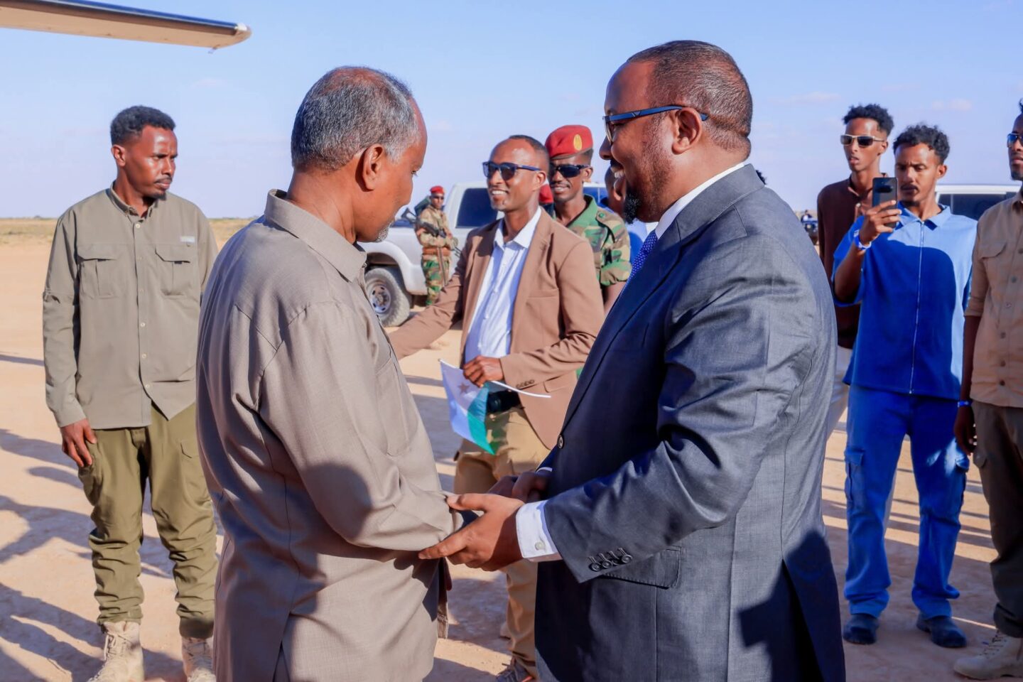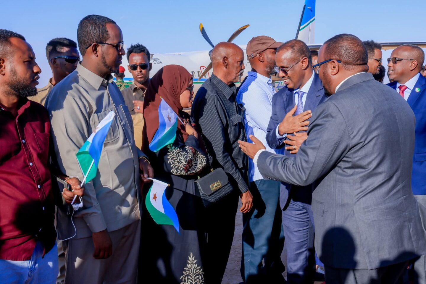Wafdiga dowladda Jabuuti waxaa garoonka diyaaradaha magaalada Laascaanood ku soo dhaweeyay madaxweynaha maamulka Waqooyi Bari Cabdulqaadir Axmed Aw Cali Firdhiye iyo mas’uuliyiin kale.