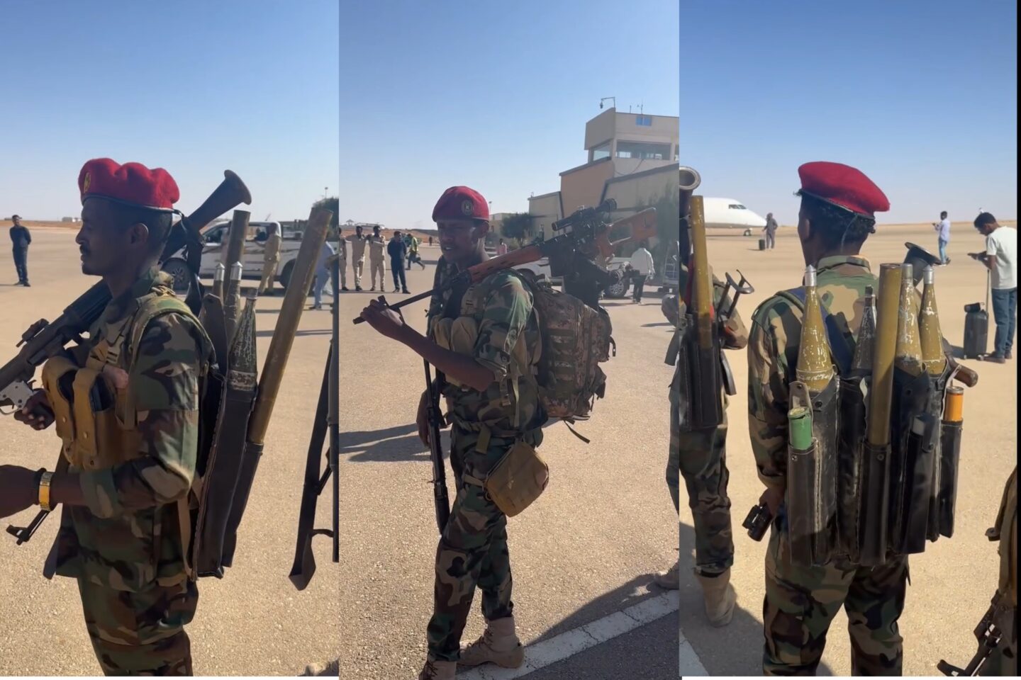 Ilaalada madaxweyne Deni oo kor u dhaafaya kontomeeyo askari ayaa qaar kamid ah waxay ku hubaysanaayeen qoryaha darandooriga u dhaca, waxay kaloo garbaha ku siteen santuuqyo rasaas kayd ah.