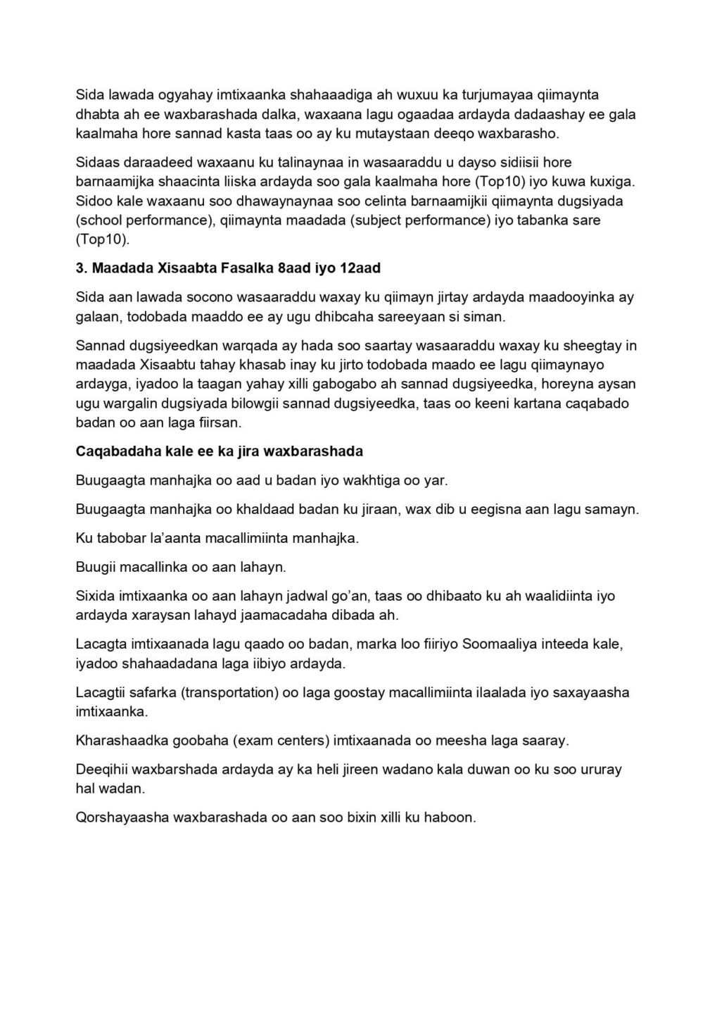Waxay kaloo sheegeen in maadada xisaaabta sanadkan lagu daray maadooyinka todobada ah ee loo qiimeeyo ardayga, halka markii hore ardayga loo qiimayn jiray todobada maado ee ugu sarreysa.