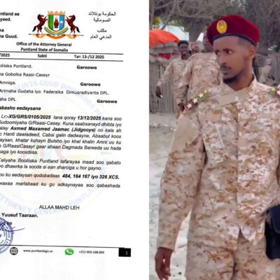 Puntland ayaa waaran soo qabasho ah u jartay taliyihii hore ee howlgalinta ciidamada PMPF ee gobolka Raascasayr Axmed Maxamed Jaamac… Sii akhri